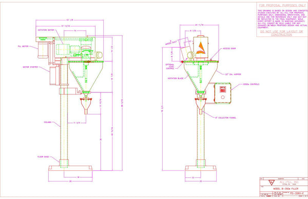 - Options: Portable frame with jack assembly, Optional level controls are available to provide high/low detection of product in the hopper, with